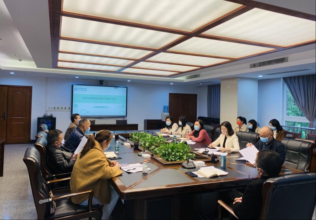 2022年4月6日上午,学校2022年教师教学能力大赛工作会在明慧楼217会议室召开。教务处主要负责人及分管负责人、各教学单位主要负责人和获奖团队负责人参加了会议,分管校领导李太斌出席会议并讲话。