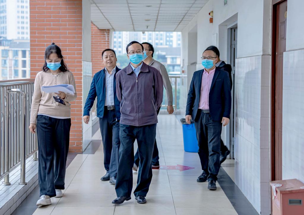 10月20日,学校开始线下教学,校党委书记代光举、院长罗晓东、副院长肖必恒、李太斌及相关部门负责人深入教学一线巡视指导工作。